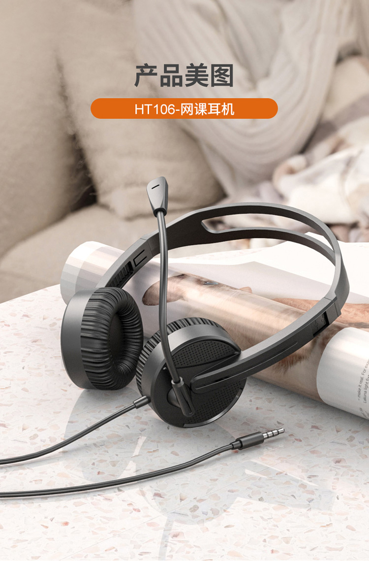 联想来酷HT106网课有线头戴式耳机耳麦 单孔笔记本台式电脑小耳机