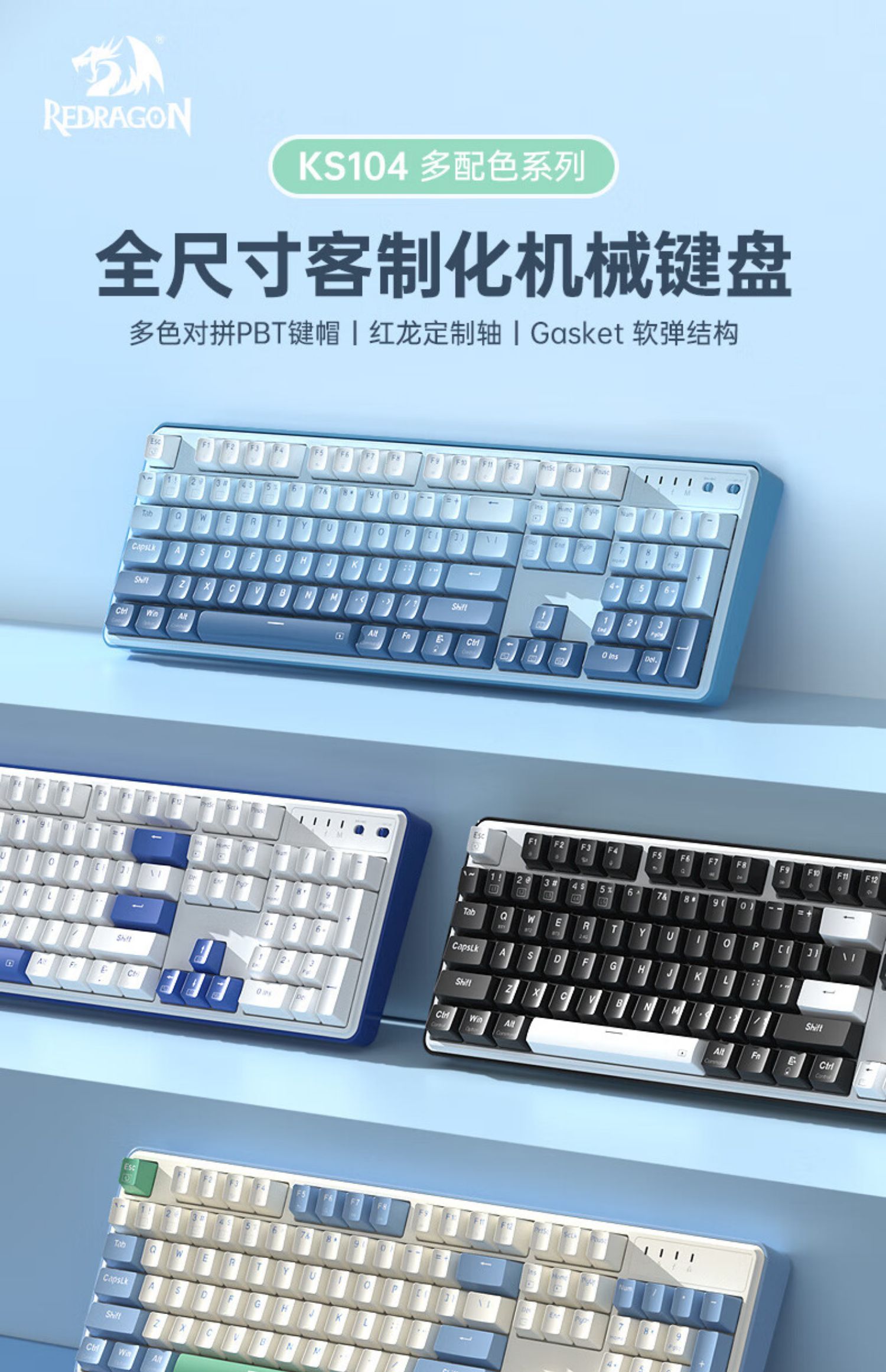 红龙KS104机械键盘游戏电竞台式电脑办公三模蓝牙有线无线热插拔